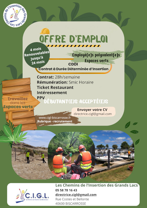 Employé polyvalent – Espaces Verts H/F – CDDI 28h